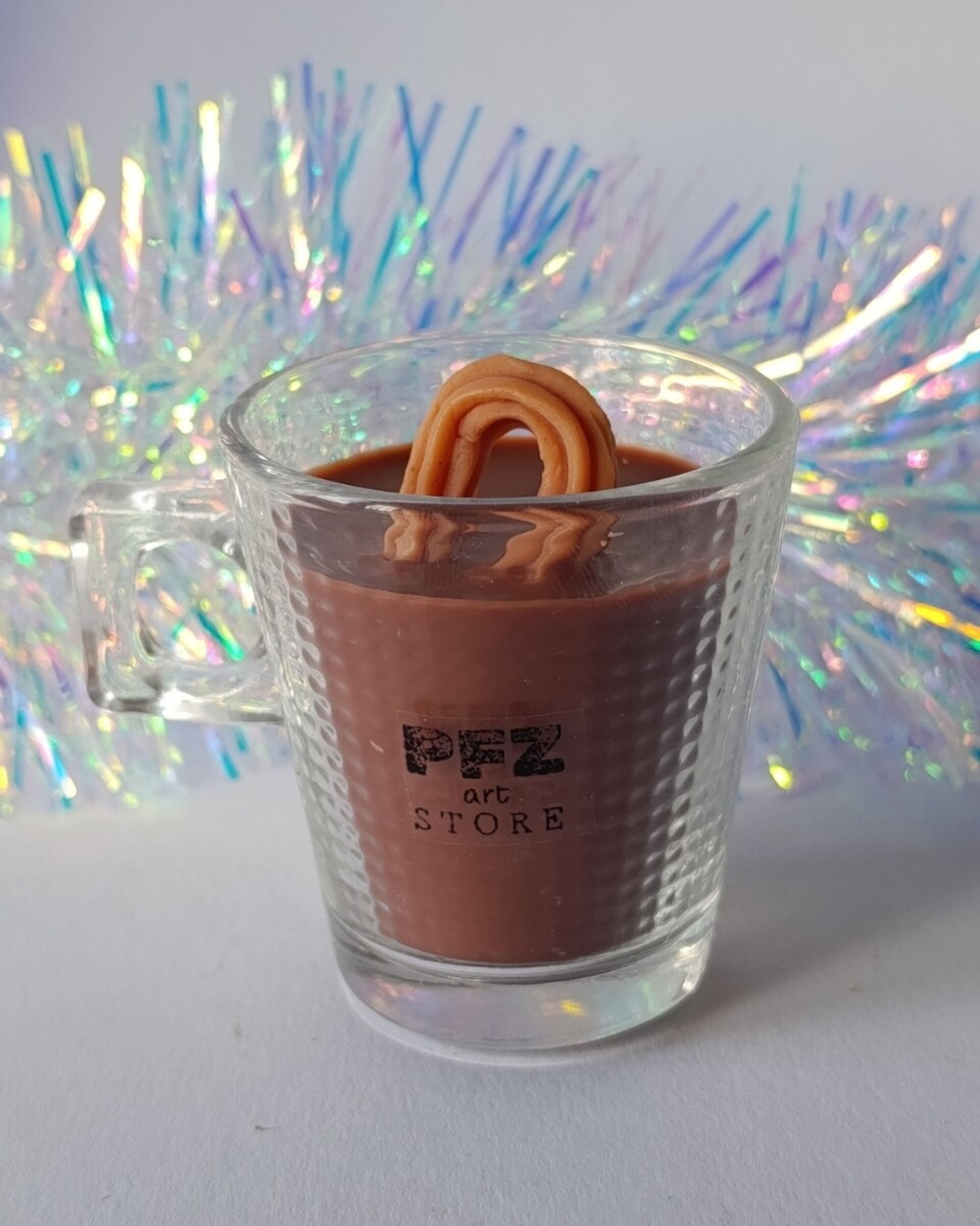 🍫☕ Vela Chocolate con Churro en Taza de Cristal · Hecha a Mano ☕🍫
